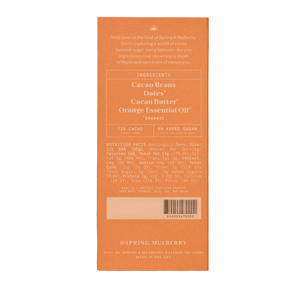 An old-world icon made modern, this date-sweetened chocolate bar matches the pinnacle of dark chocolate with the pure essence of blood orange. And the result is an enchantingly sweet, deliciously citric, completely enticing treat, all without a pinch of refined sugar.