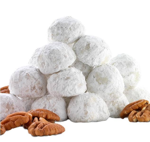 Hand-tossed in a blizzard of confectioners sugar, each buttery bite of Tea Cake is loaded with toasted pecans.