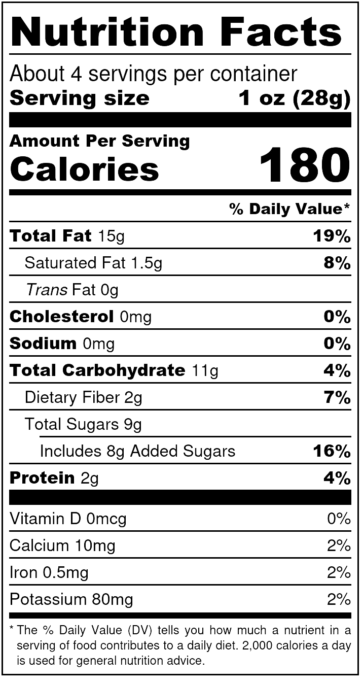 The classic pairing of dark, amber, sweet maple infused with gluten free bourbon gives you a smoky, sweet treat with vanilla notes and added crunch.