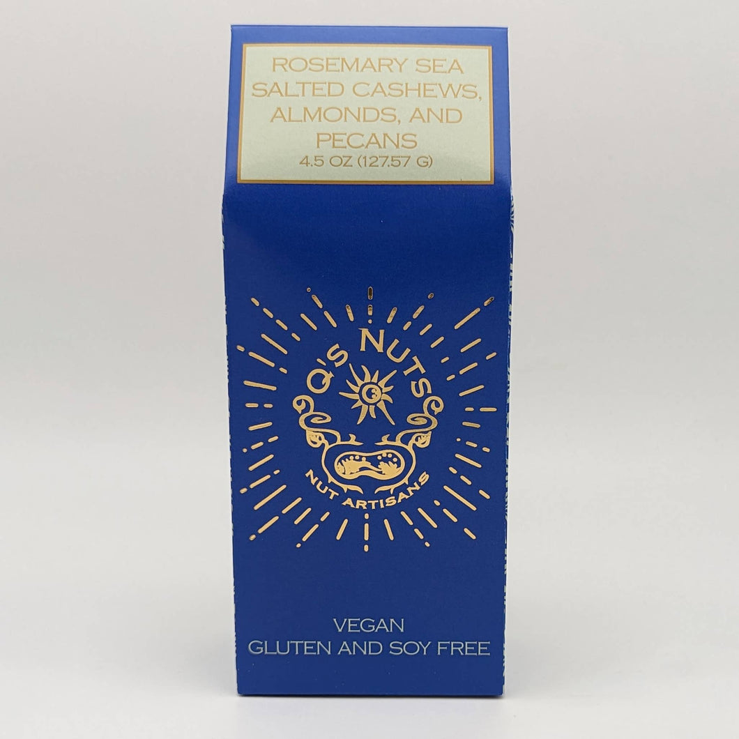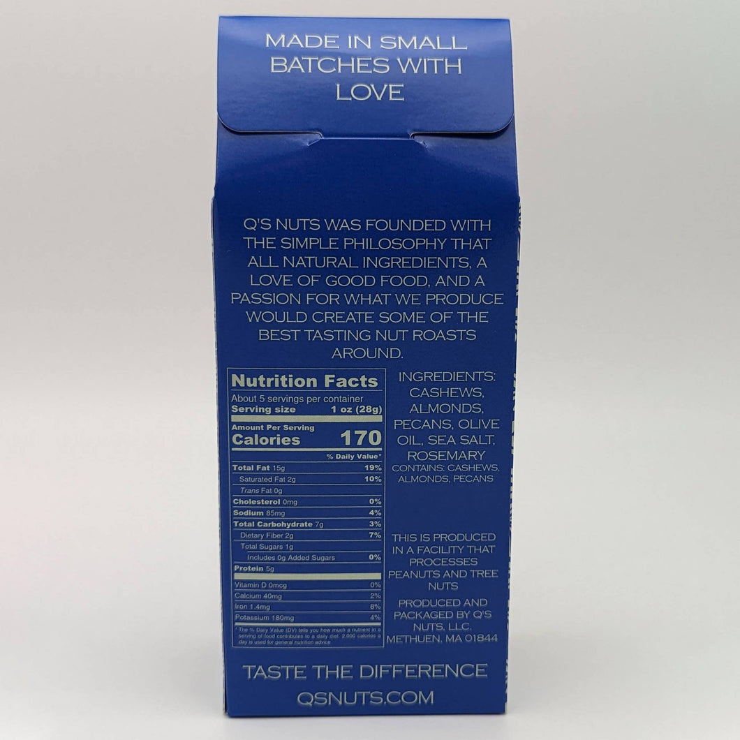 Savor the distinctive taste of Q's Nuts, LLC's Rosemary Sea Salt Cashews, Almonds, & Pecans Gift Box.